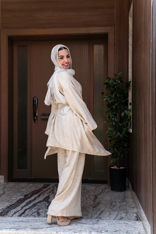حلو فكره الحزام المن جوه بيدي شكل مختلف ولما بتتساب واسعه شكل تاني بجد شكرا والخامه طبعا جميله