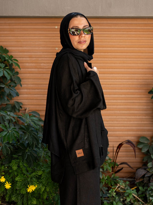 BLACK ELEGANCE HIGH-LOW CARDIGAN
