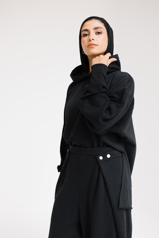 BLACK ELEGANCE HIGH-LOW CARDIGAN
