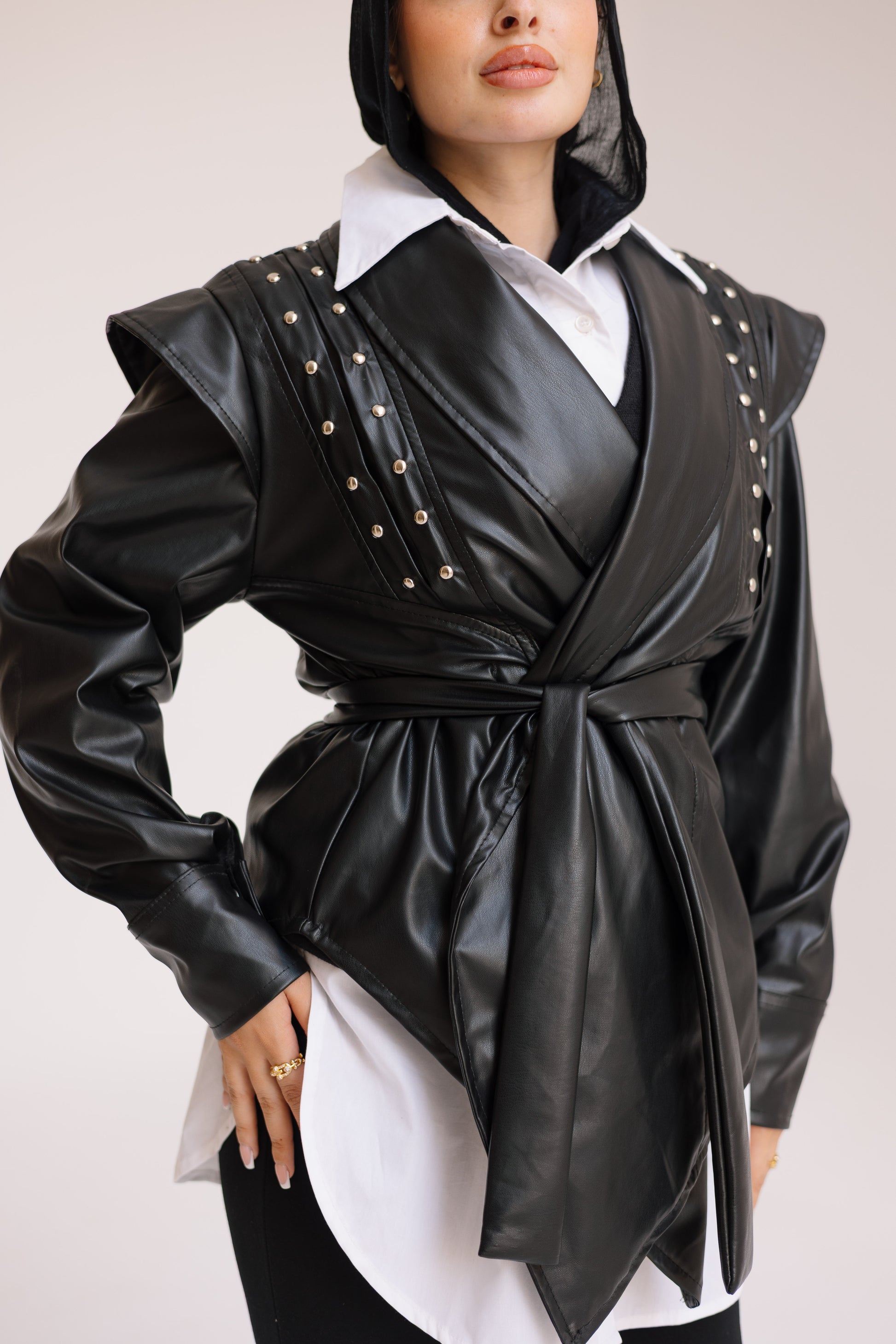 Introducing The Bold Studded Leather Wrap — a powerful, chic, and standout winter piece designed to turn any outfit into a statement.